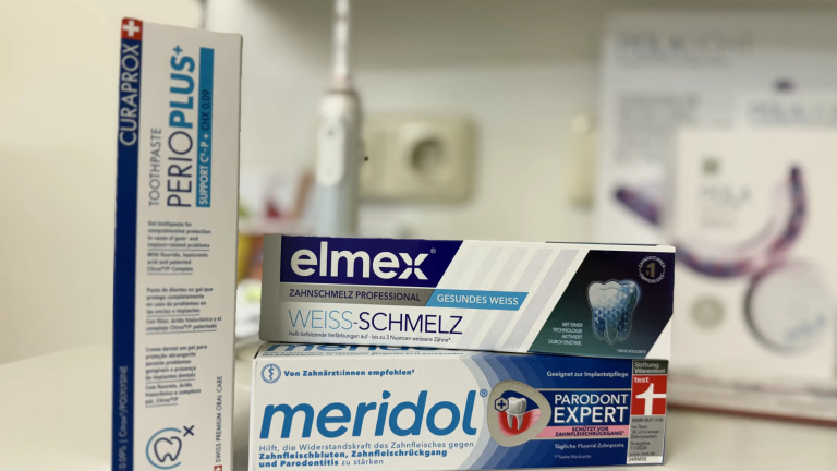 Wir führen eine bewusst kleine, aber wirkungsvolle Auswahl an Markenprodukten, die sich in der Praxis bewährt haben - von der klassischen Zahnbürste bis hin zu Speziallösungen für individuelle Bedürfnisse. Die abgebildeten Produkte dienen als Beispiel und repräsentieren nur eine Auswahl aus unserem Sortiment